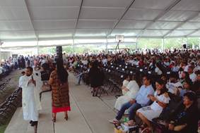 “Hay muchas expresiones de fiesta y entre nosotros hay “fiesteros”. En algunos lugares todavía guardan las tradiciones, hay un cargo que le llaman los fiesteros. Entonces dijimos, ¿cómo hacer júbilo, cómo hacer fiesta? Pues vamos a pedir a “los fiesteros” que hagamos una fiesta. Así entonces, la fiesta aquí está, esto es la máxima expresión que tenemos hasta ahora de una Fiesta Diocesana, una fiesta que enseñe, una fiesta que instruya, una fiesta que ayude a descansar, una fiesta que cure, que sane.”